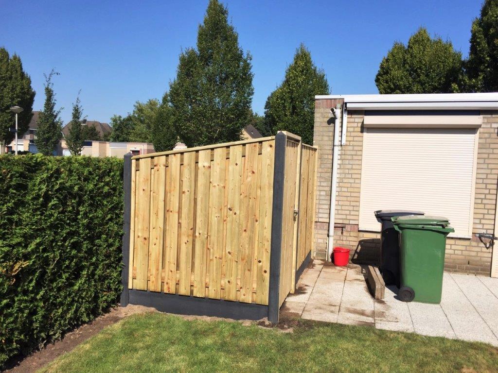 Schutting Noord-Europees vuren met poort, betonpalen, betonplaten incl. schuin paneel