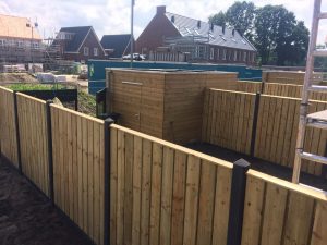 Nieuwbouwwijk geheel voorzien van nieuwe standaard hout-beton schutting geimp. vurenhout, sierhekwerk & poorten