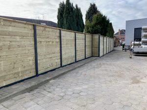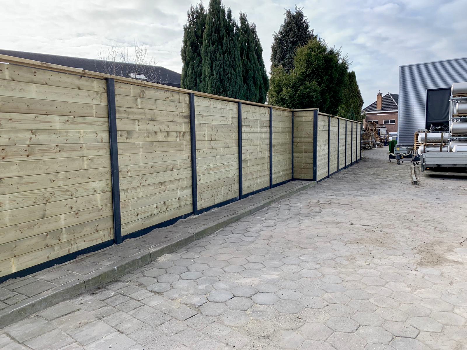 Blokhutprofielschutting geïmpregneerd vurenhout geplaatst