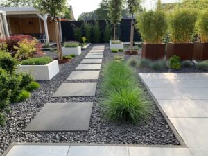 Door daamswp|2022-06-16T16:29:17+02:0002/06/2022|Reacties uitgeschakeld voor Een gehele tuin aangelegd met nieuwe keramische bestrating Cera3line; Lux & Dutch 70 x 70 x 3,2 cm Boston Uni, staptegels Soft Comfort 80 x 80 cm – kleur Nero, grind basalt. Tevens is ook de overkapping & tuinhuis door onze jongens geplaatst, uitgevoerd in Frans blank douglas hout (klant heeft het zelf wit geschilderd)