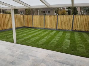 Door daamswp|2018-05-25T14:15:19+02:0025/05/2018|Reacties uitgeschakeld voor Standaard hout-beton schutting van geimp. vurenhout geplaatst, graszoden & sierbestrating 30 x 60 cm gelegd.