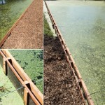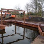 - Hardhouten Cumaru vlonder rond zwemvijver gelegd (tevens bij ons verkrijgbaar; hardhouten onderbalken en RVS vlonderschroeven op diverse lengtes)