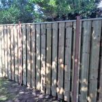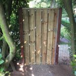 - Schuttingpanelen Noord-Europees geïmpregneerd vuren geplaatst tussen hardhouten palen