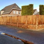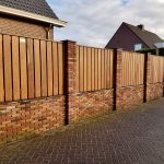 - Hardhouten ipé schuttingpanelen geplaatst tussen gemetselde pilaren in Bergeijk
