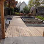 - Schutting Noord Europees vuren geïmpregneerd plaatsen, leggen sierbestrating & Hardhouten vlonder, lijmen bloembakken nieuwbouwwijk ‘Lage Heide’ Valkenswaard