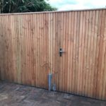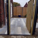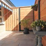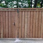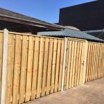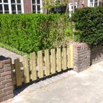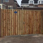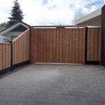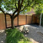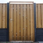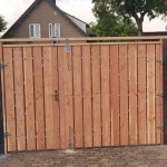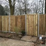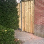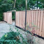 - Douglas poort/houten schutting met betonpalen & betonplaten