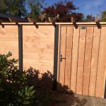 - Schutting & poort van Noord-Europees vurenhout met gaaspaneel, antraciete betonplaten & betonpalen geleverd & geplaatst