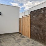 - Nieuwe poort & schuttingpaneel/pasvak van Frans blank douglashout geplaatst, poort is op stalen frame inclusief hang- en sluitwerk