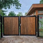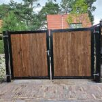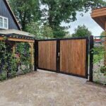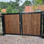 - Houten poort stalen frame met hang- en sluitwerk