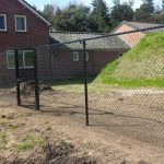 - Zwart privacy doek bevestigd op gaashekwerk