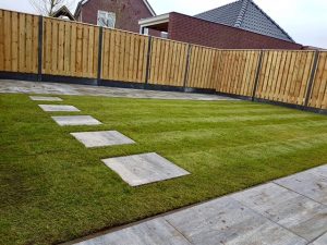 Schutting plaatsen, leggen nieuw gras, sierbestrating & staptegels nieuwbouwwijk ‘Lage Heide’ Valkenswaard
