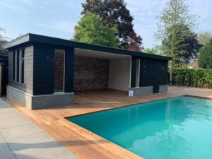 Door daamswp|2021-07-22T17:03:24+02:0022/07/2021|Reacties uitgeschakeld voor Overkapping met zwarte planken en een hardhouten vlonder van Cumaru FAS planken rondom een zwembad