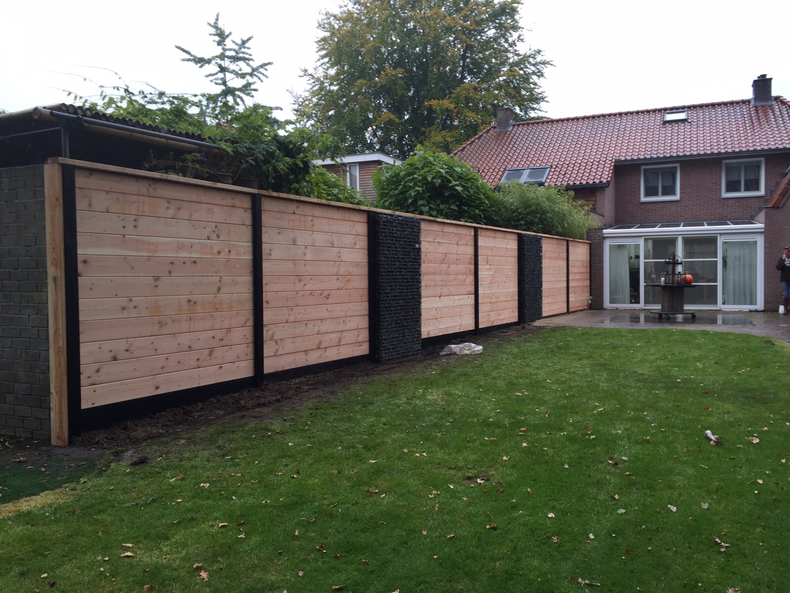 Schutting blokhutprofiel Frans blank Douglas met gaasmazen inclusief grind plaatsen Eersel